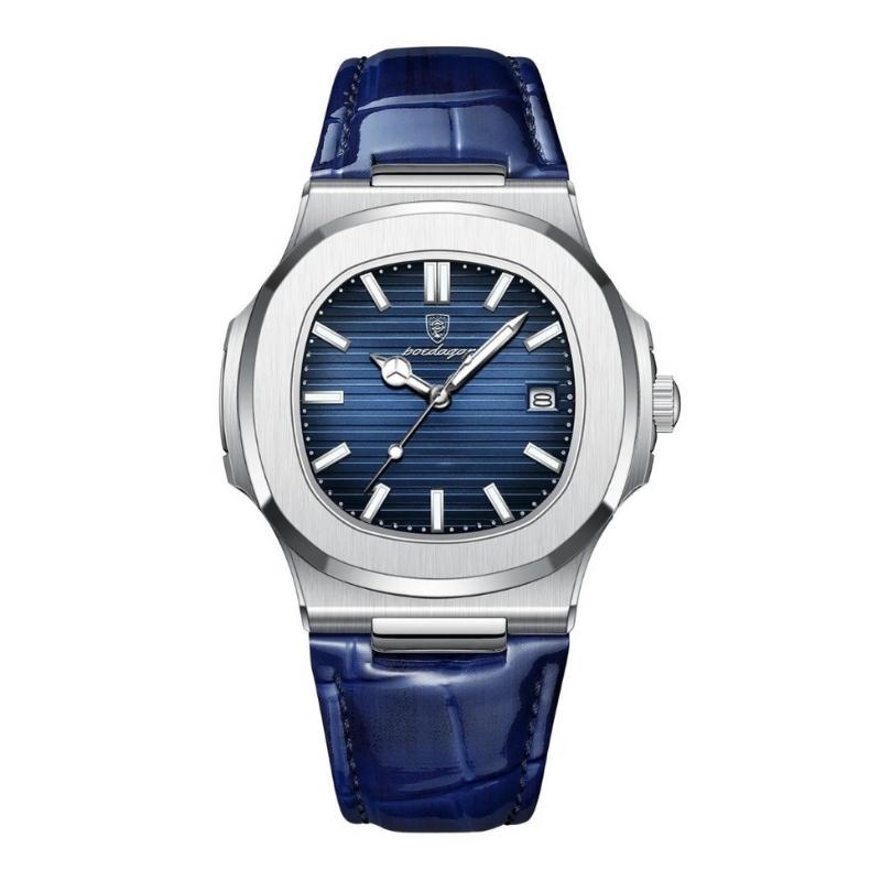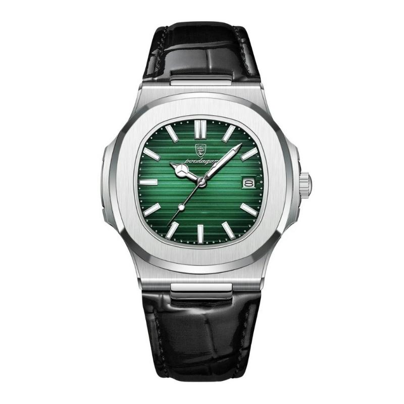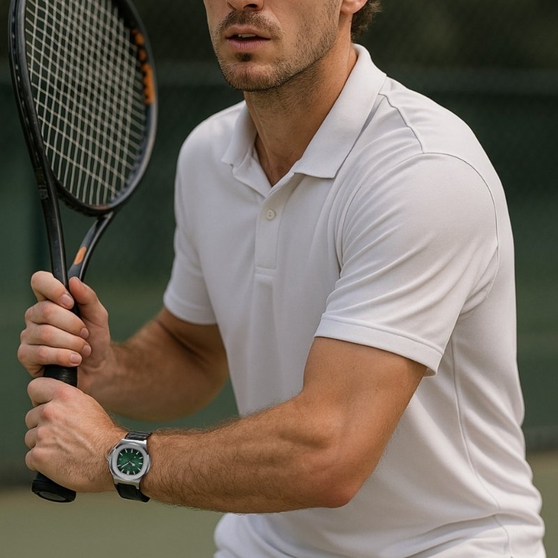 El Dinamico combina el espíritu deportivo con detalles de acabado refinados, creando un reloj versátil y elegante. Su correa de cuero con costura marcada y caja de acero inoxidable cepillado remiten a la estética atemporal apreciada por coleccionistas.